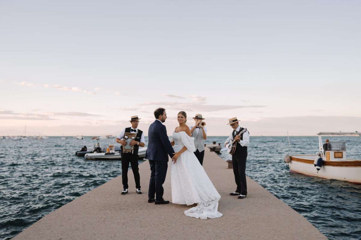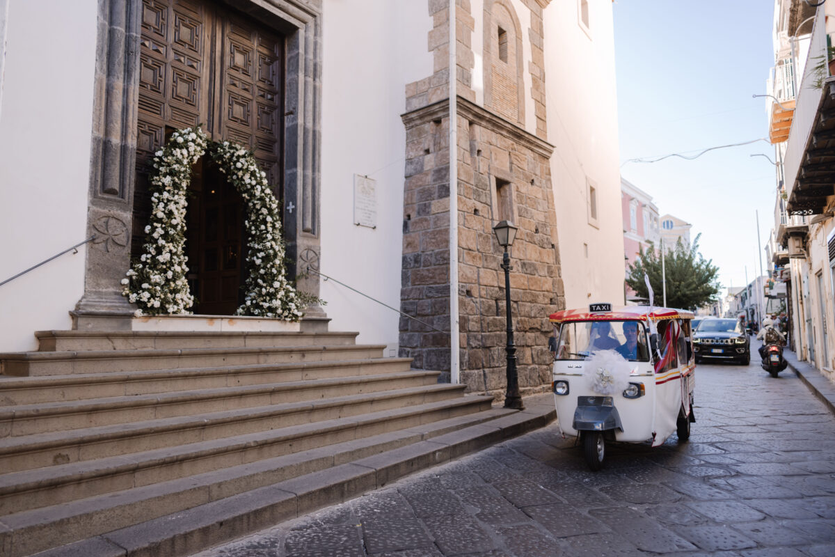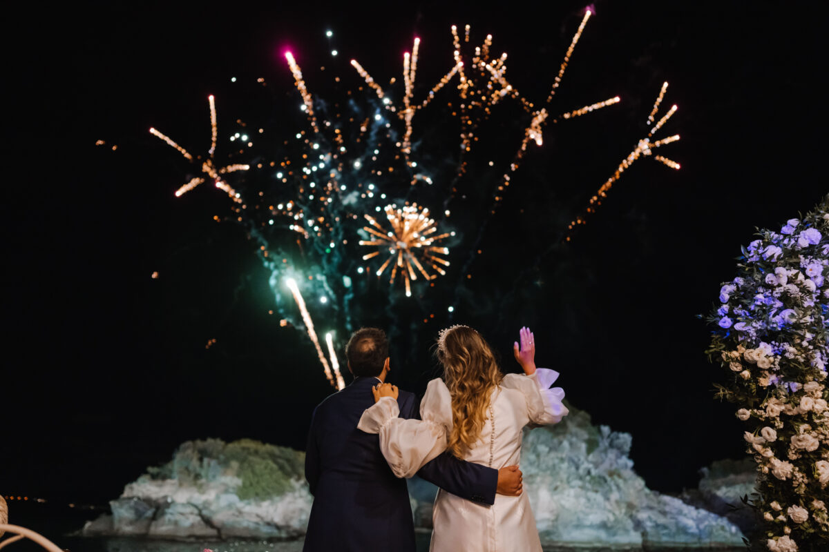 For the ceremony, they chose a charming church in Ischia’s historic center, followed by a journey to the reception venue aboard traditional wooden boats, making the trip even more unique and special.