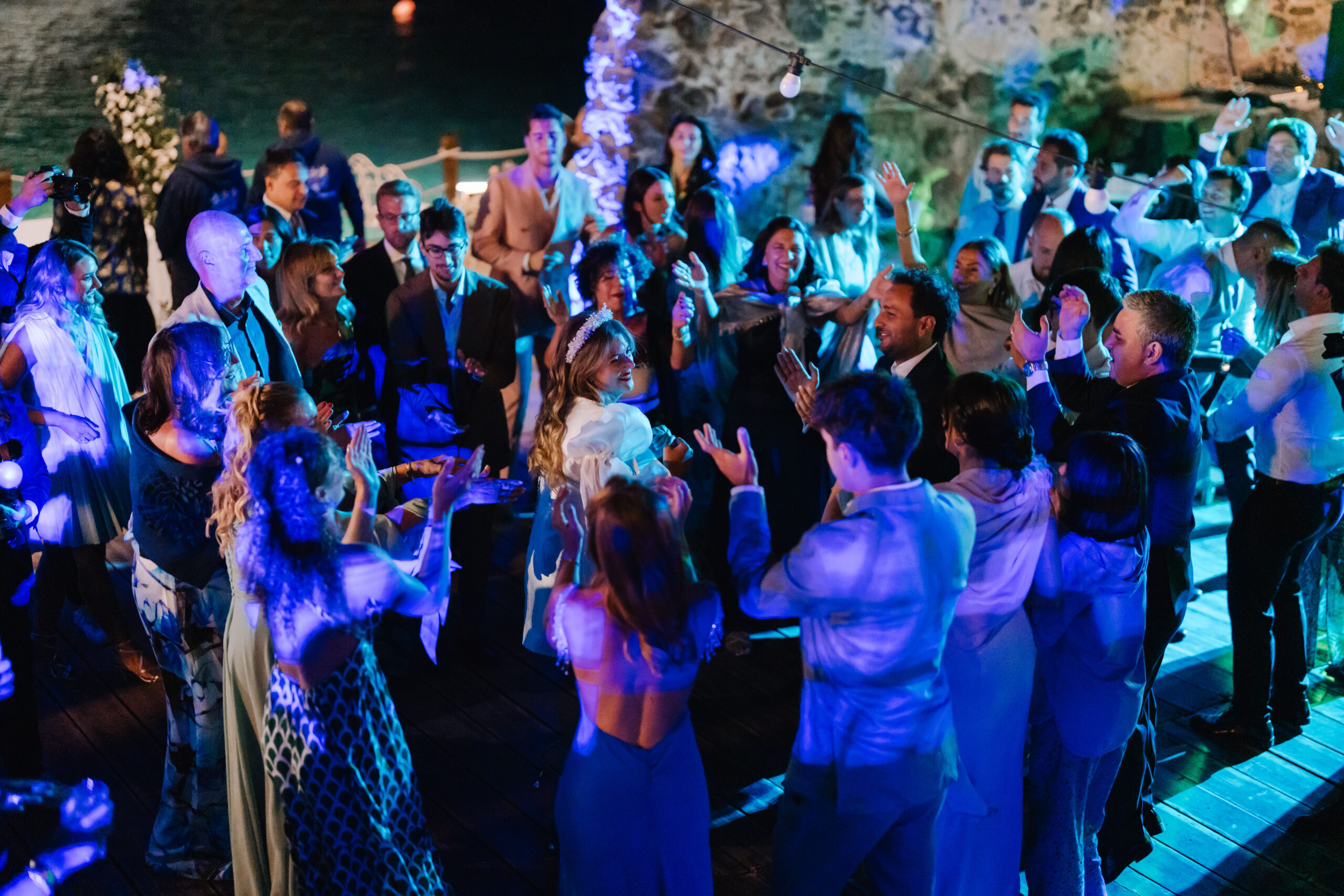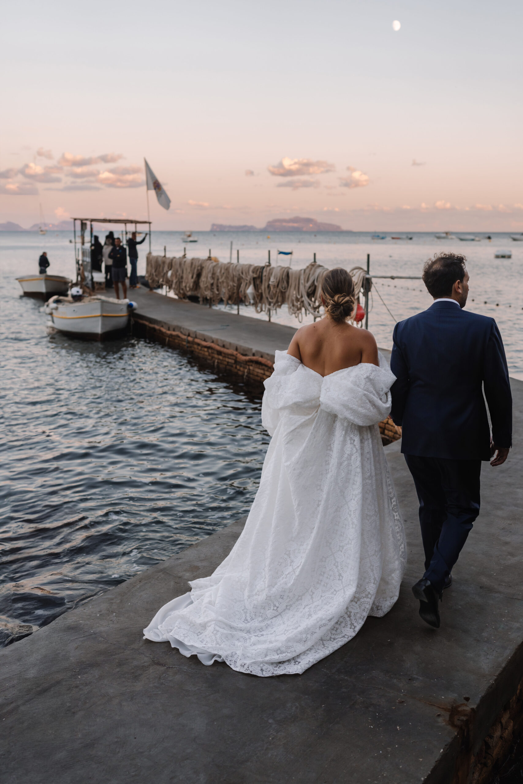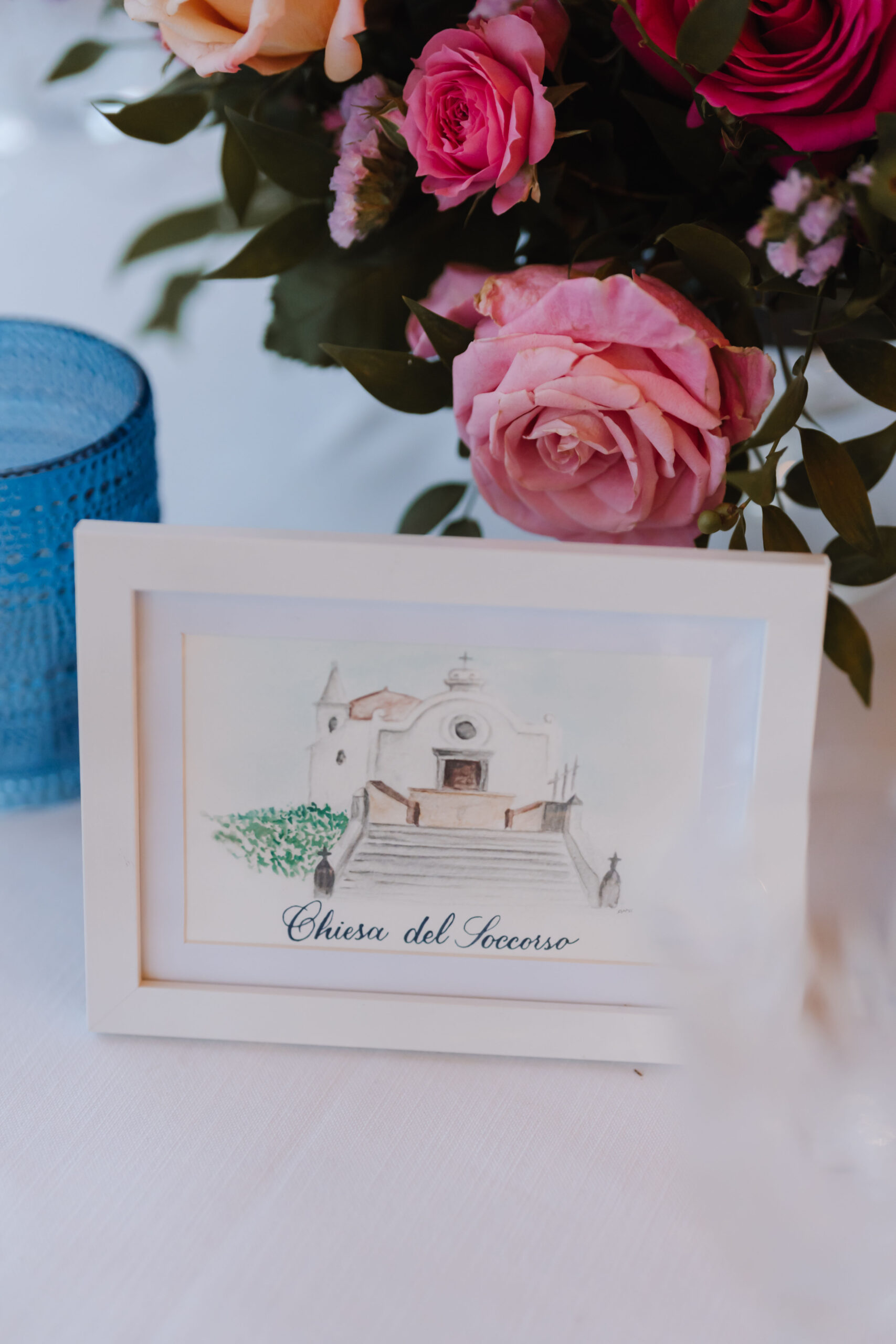 For the ceremony, they chose a charming church in Ischia’s historic center, followed by a journey to the reception venue aboard traditional wooden boats, making the trip even more unique and special.