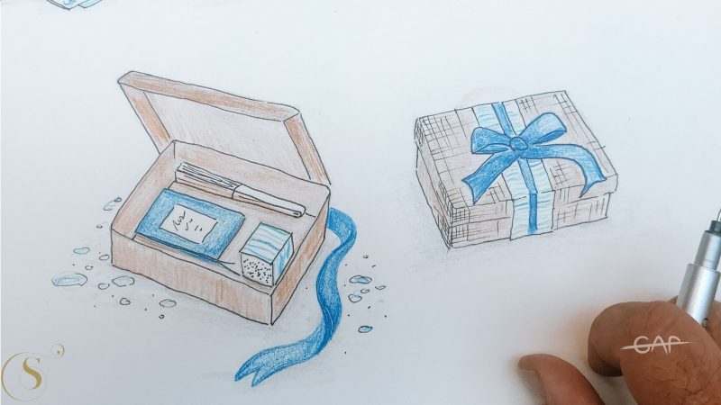 È una borsa omaggio per gli invitati e contiene diversi oggetti necessari e serve anche a dare un tocco originale all’ evento.