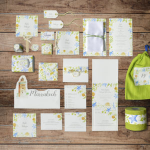 -Menu e decorazione del tovagliolo: Arredare la tavola è un’arte e ogni dettaglio è importante. Il menu è un elemento fondamentale da non trascurare! è progettato e realizzato in coordinato a tutti gli altri elementi della wedding stationary, e può essere posizionato più grande e più importante al centro del tavolo o singolarmente, sul tovagliolo piegato, di ogni commensale e decorato con eventuali segnaposto personalizzati, nastrini, e piccoli cadeau de mariage a tema.
